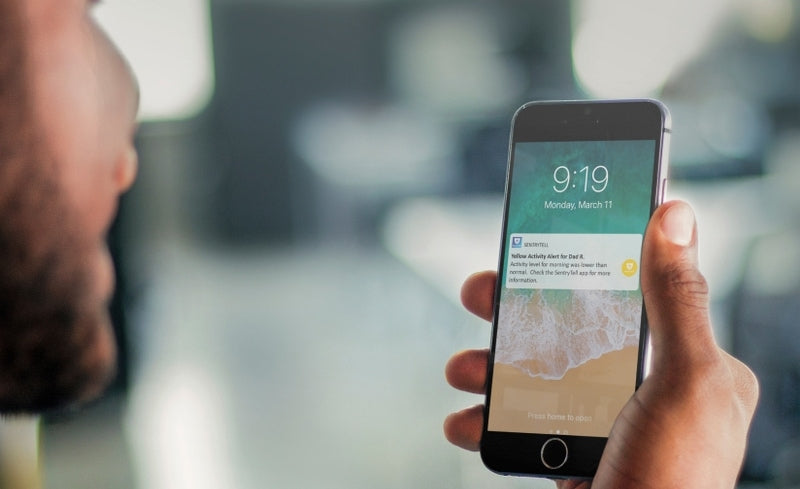 The SentryTell app makes checking in on loved ones easy. We'll send an alert to their phone only if something unusual is happening.