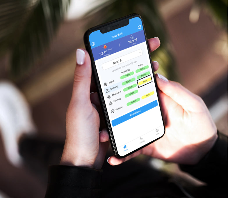 SentryTell offers 24/7 monitoring of your senior. Using an app on their phone, your loved ones can see the green "normal" that everything is good in your home! If the activity level is unusual, they get a simple notification letting them know that. There's no need to wear pendants or bracelets. You don't need to remember to charge anything either!